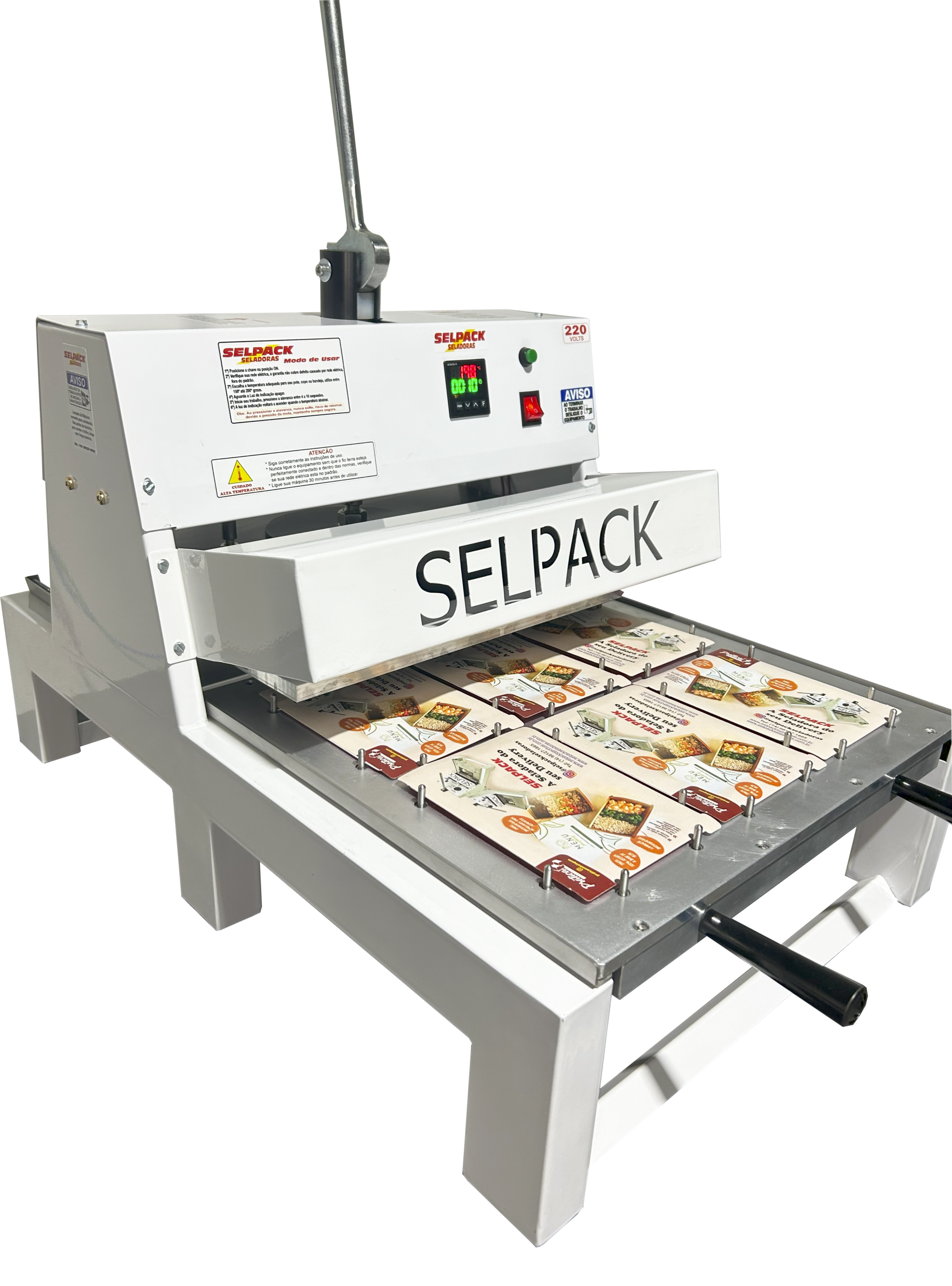 A  Seladora SELPACK modelo SPK-BJGGG é a  mais vendida no mercado, pois é a única que você pode trabalhar com bandejas de plástico ou papel biodegradável, já enviamos ela pronta para poder selar sua bandeja com selo de alumínio, selo de plástico ou selo de papel, com a mesma maquina pode ser selado qualquer formato de embalagem podendo ser redondo, retangular quadrado, só adquirir gabaritos extras.