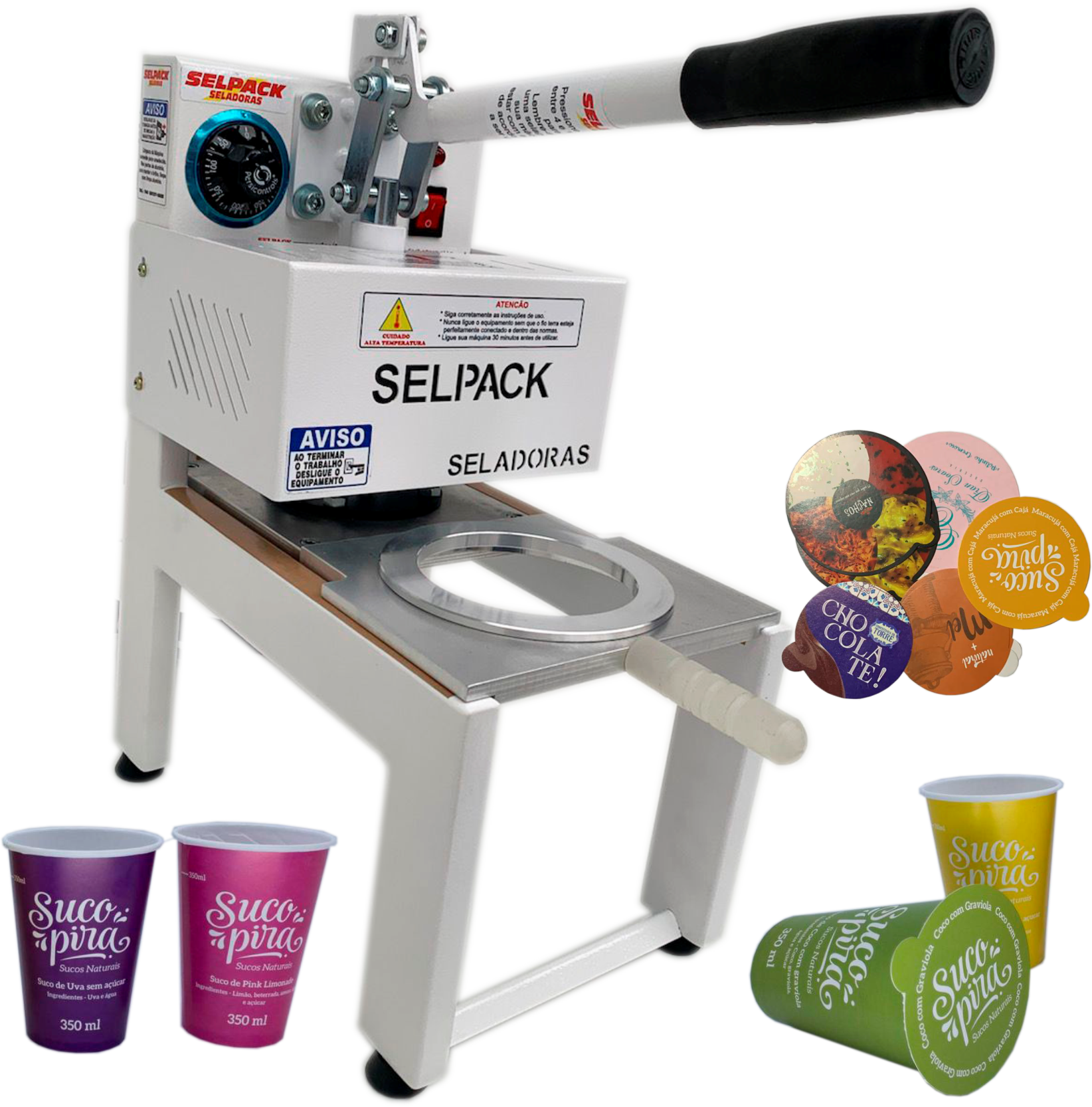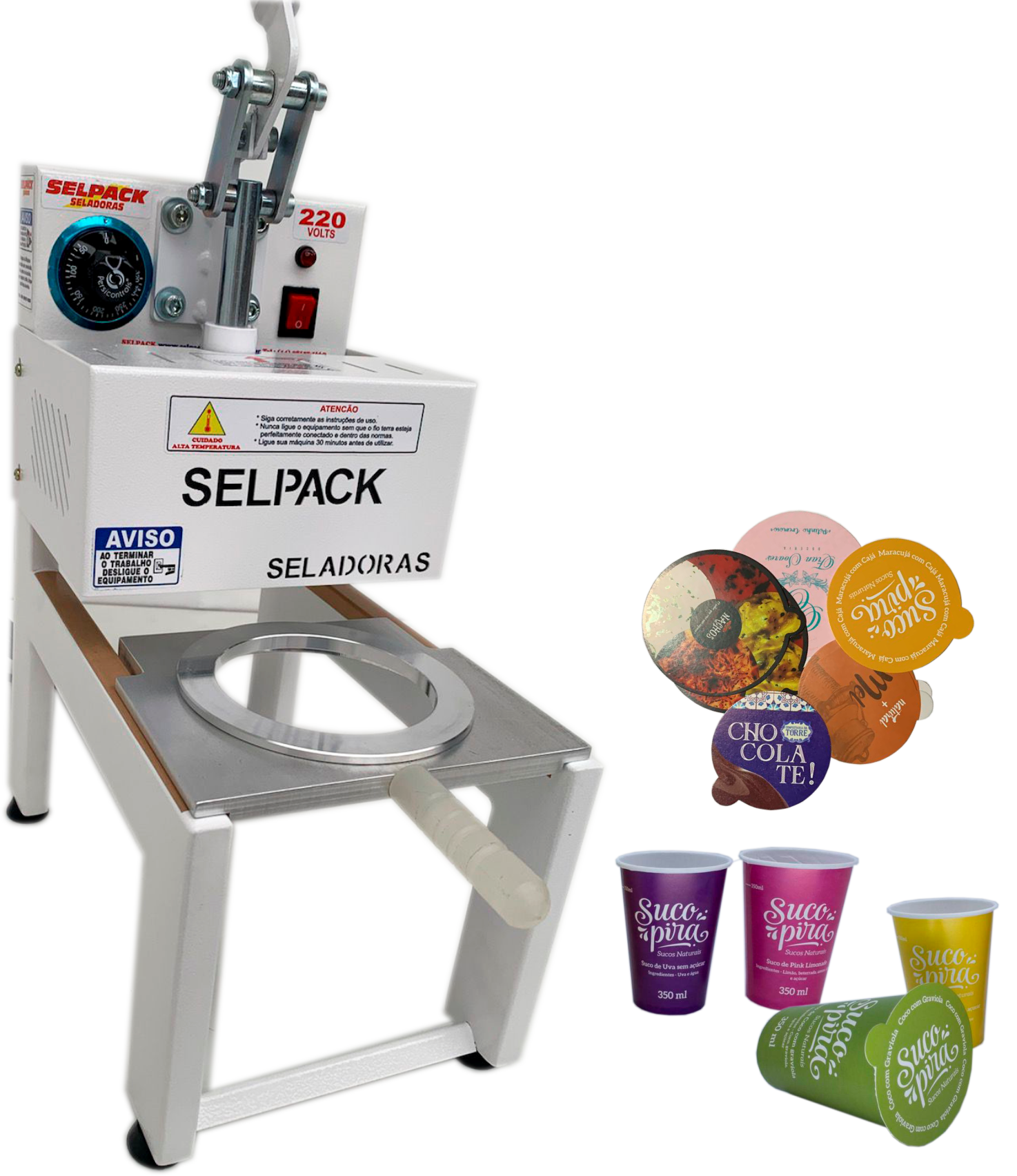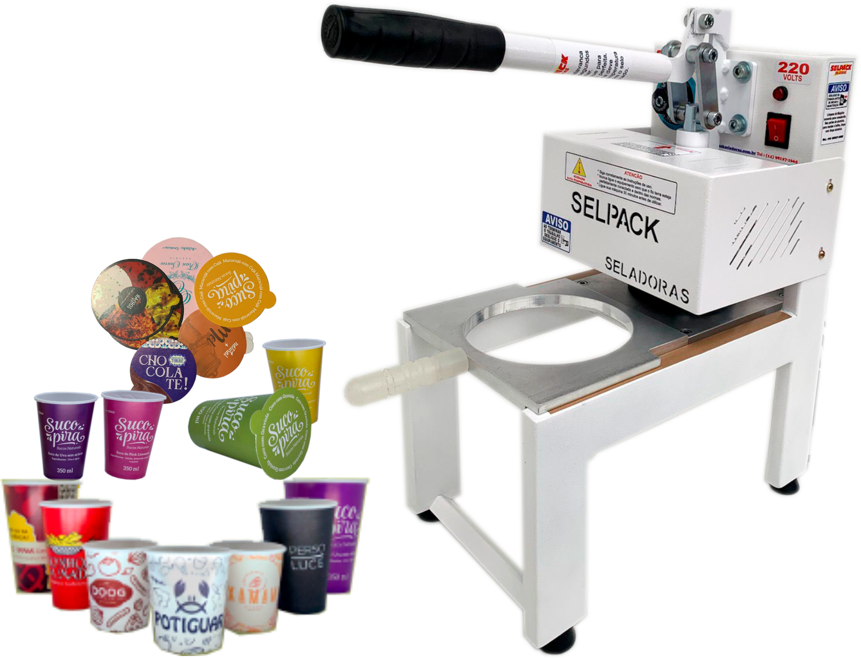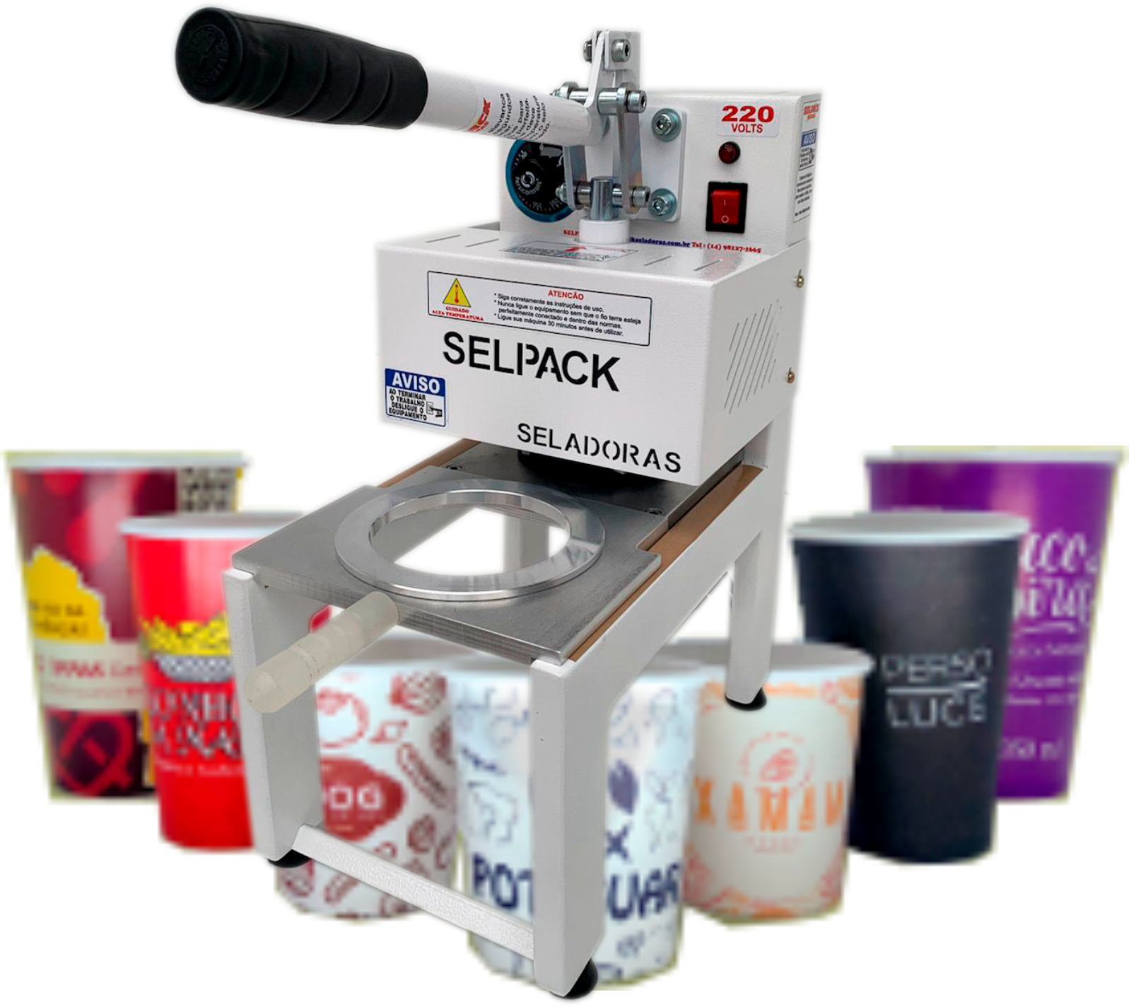 A  Seladora SELPACK modelo SPK-00 é a  mais vendida no mercado, pois é a única que você pode trabalhar com copos e potes redondos de qualquer tamanho, sela com selo de papel biodegradável ou selo alumínio.