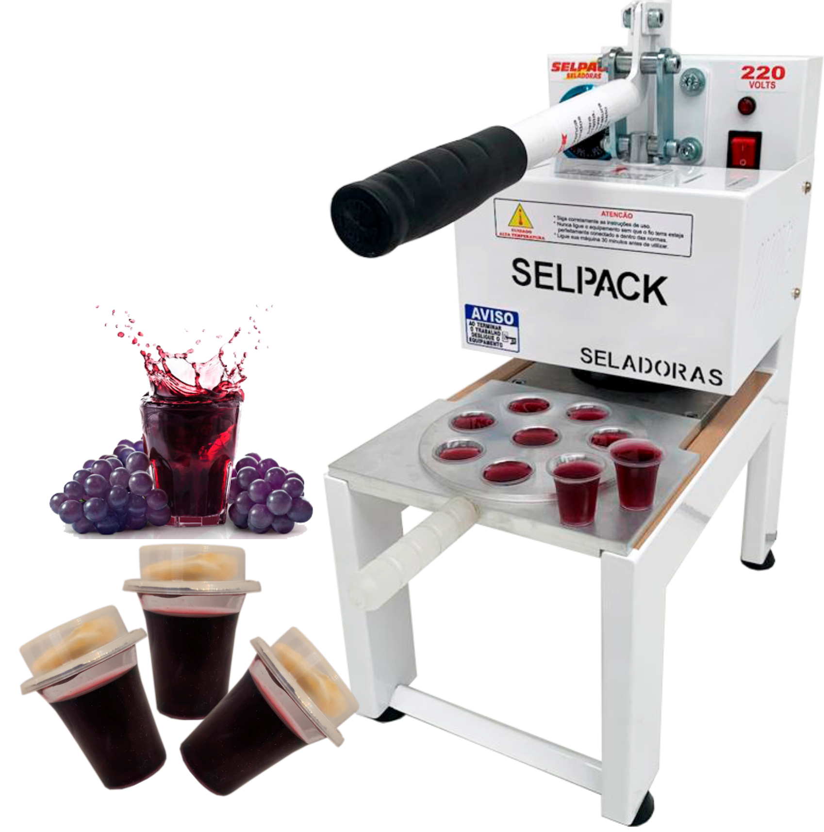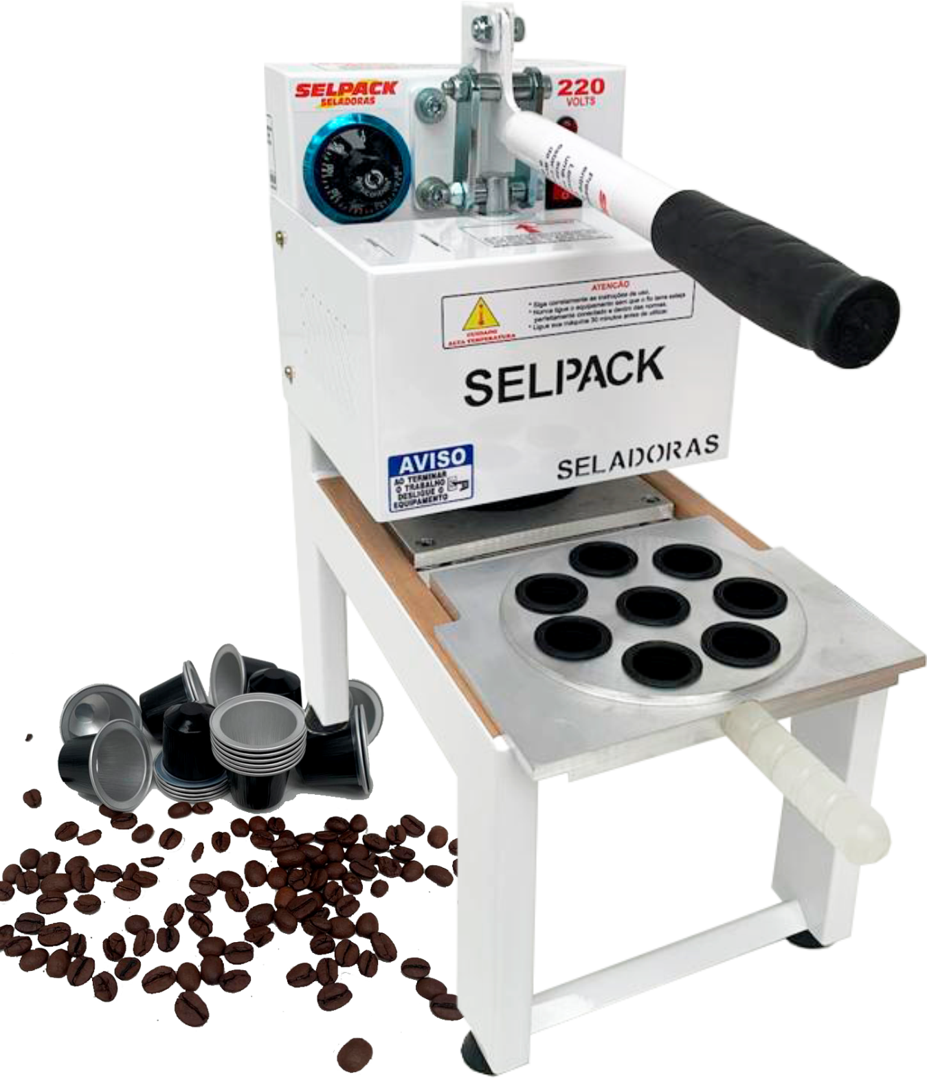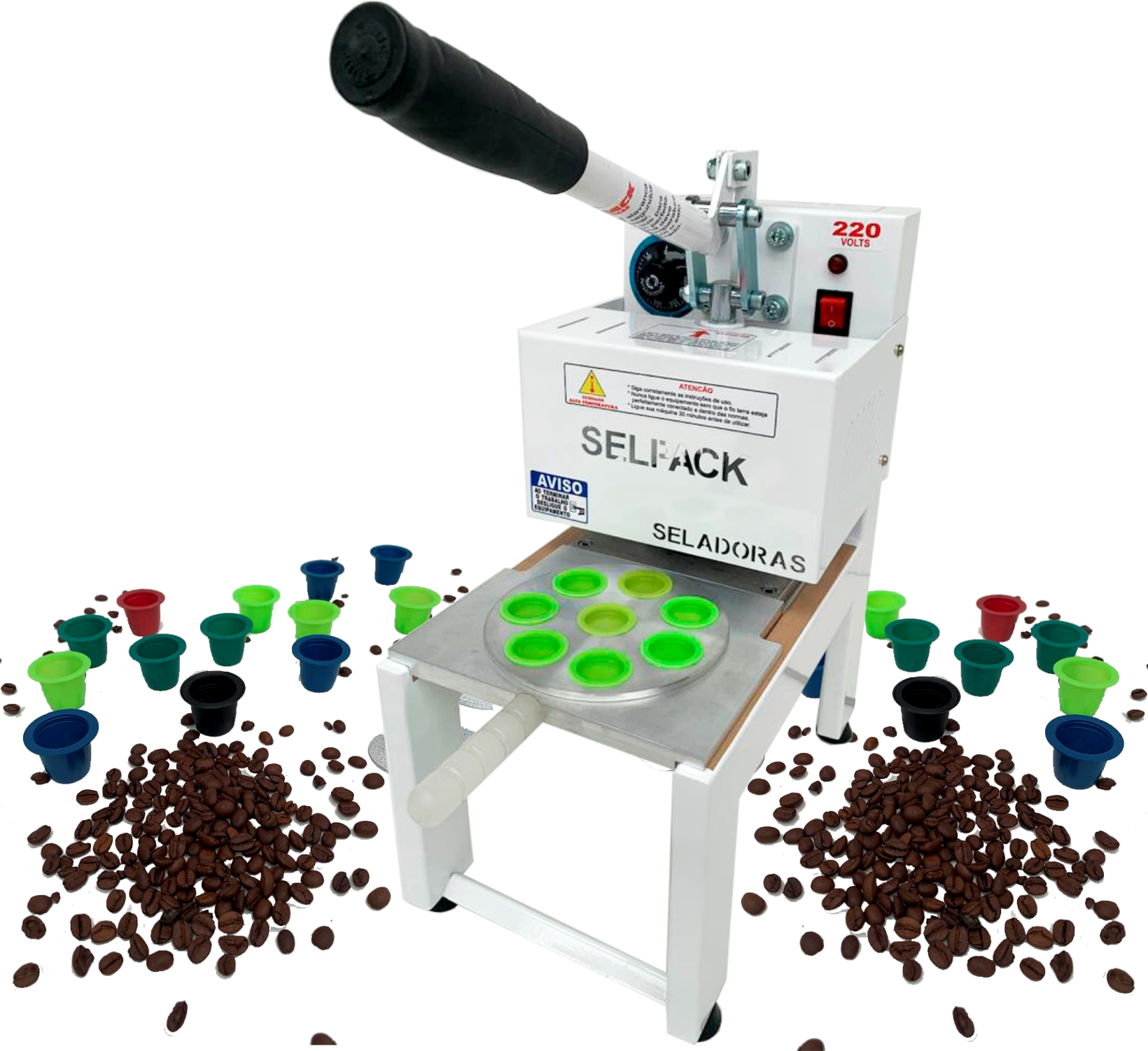 Uma máquina manual muito fácil de ser utilizada, em apenas 3 segundos com selo de aluminio, sela 8 capsulas de café ou 8 calice santa ceia de uam só vez garantido ao seu produto sua conservação e suas propriedades nutricionais.