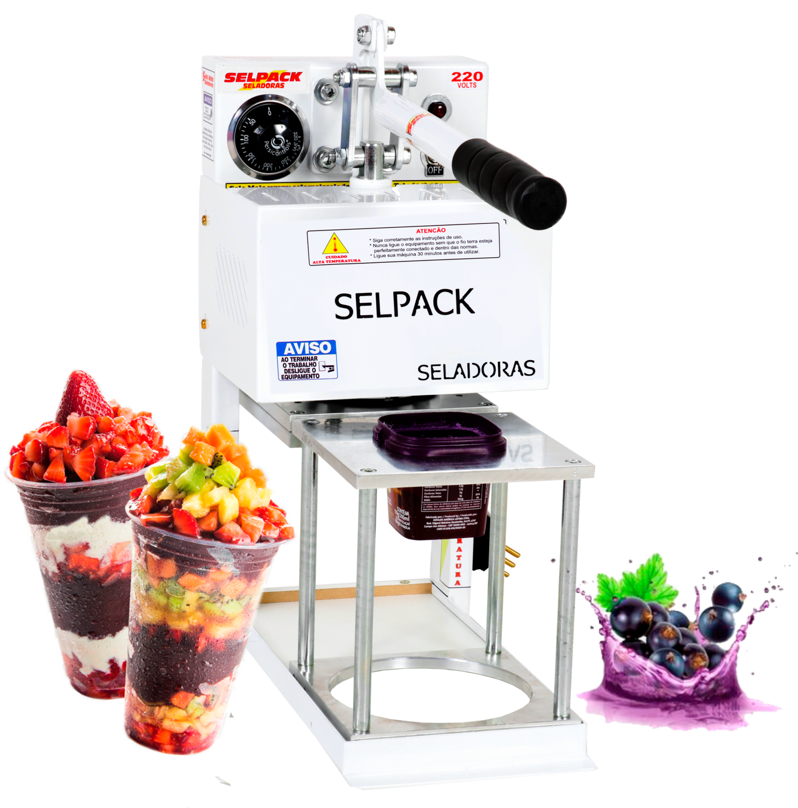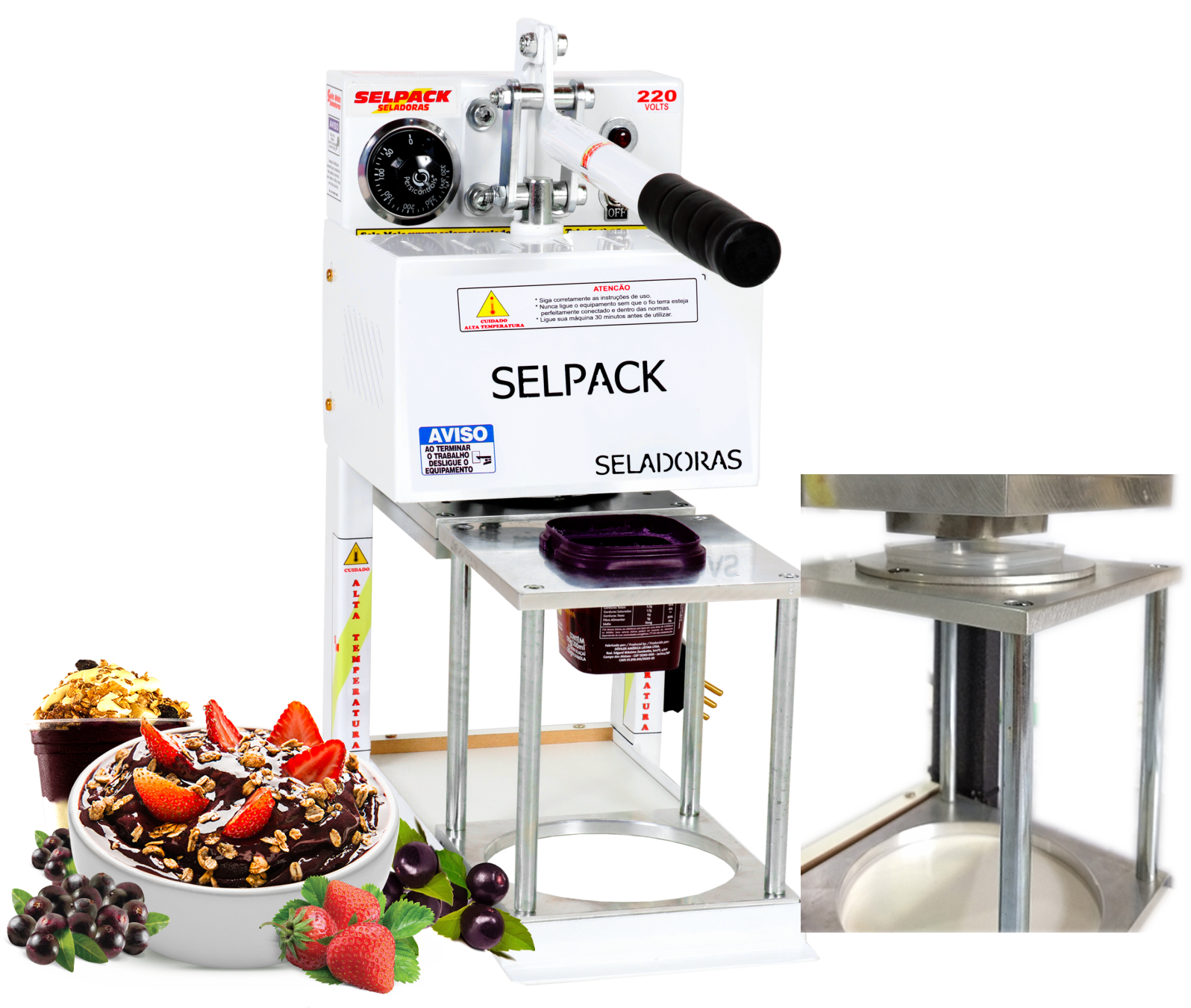 A  Seladora SELPACK modelo SPK-1000 é a  mais vendida no mercado, uma seladora desenvolvida para potes de açai redondos ou quadrado com possibilidade de selar também a tampa para acondicionamento de granola com seu exclusivo adaptador, sela 1 pote por vez em até 3 segundos com selo de alumínio, com capacidade de selar até 240 por hora 1500 por dia, a mais rápida do mercado.